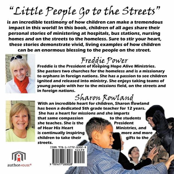 "Little People Go to the Streets" is an incredible testimony of how children can make a tremendous impact in this world! In this book, children of all ages share their personal stories of ministering at hospitals, bus stations, nursing homes and on the streets to the homeless. Sure to stir your heart, these stories demonstrate vivid, living examples of how children can be an enormous blessing to the people on the street.