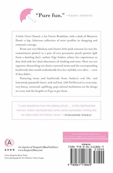 A little Coco Chanel, a lot Carrie Bradshaw, with a dash of Maureen Dowd--a hip, hilarious collection of mini-profiles in shopping and romantic courage. From one very fabulous and elusive little pink raincoat (to woo the commitment phobe) to a pair of very persuasive peach panties (gift from a dazzling doc), author Gigi Anders relates her experiences as they deal with her dual obsessions of clothing and men. Here are ten vignettes chronicling ten choice sartorial items and the corresponding boyfriends that would undoubtedly love her stylishly ever after...even if they didn't.Featuring items and boyfriends from Anders's real life, real (extremely jammed) closet, and real bed, Little Pink Raincoat is a very tasty, very funny, universal, uplifting, pop cultural meditation on the things we crave and the lengths we'll go to get them.