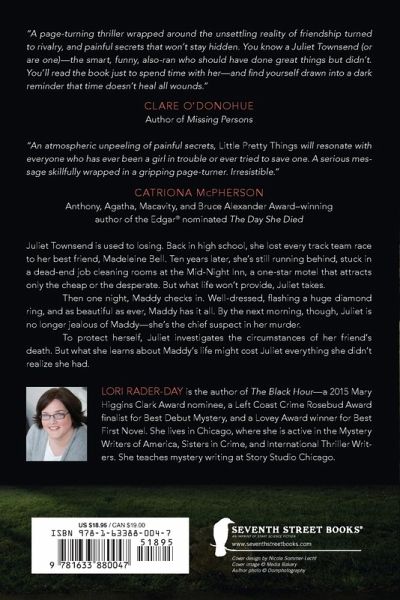 Mary Higgins Clark Award Winner! OLD RIVALRIES NEVER DIE. BUT SOME RIVALS DO. Juliet Townsend is used to losing. Back in high school, she lost every track team race to her best friend, Madeleine Bell. Ten years later, she's still running behind, stuck in a dead-end job cleaning rooms at the Mid-Night Inn, a one-star motel that attracts only the cheap or the desperate. But what life won't provide, Juliet takes. Then one night, Maddy checks in. Well-dressed, flashing a huge diamond ring, and as beautiful as ever, Maddy has it all. By the next morning, though, Juliet is no longer jealous of Maddy-she's the chief suspect in her murder. To protect herself, Juliet investigates the circumstances of her friend's death. But what she learns about Maddy's life might cost Juliet everything she didn't realize she had.