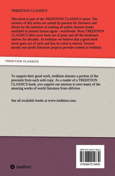 This book is part of the TREDITION CLASSICS series. The creators of this series are united by passion for literature and driven by the intention of making all public domain books available in printed format again - worldwide. At tredition we believe that a great book never goes out of style. Several mostly non-profit literature projects provide content to tredition. To support their good work, tredition donates a portion of the proceeds from each sold copy. As a reader of a TREDITION CLASSICS book, you support our mission to save many of the amazing works of world literature from oblivion.