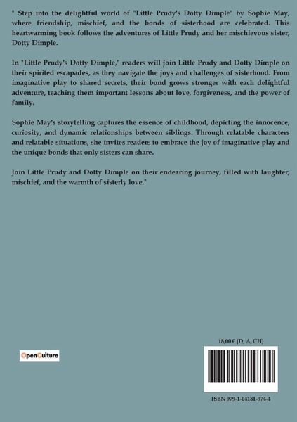 " Step into the delightful world of "Little Prudy's Dotty Dimple" by Sophie May, where friendship, mischief, and the bonds of sisterhood are celebrated. This heartwarming book follows the adventures of Little Prudy and her mischievous sister, Dotty Dimple. In "Little Prudy's Dotty Dimple," readers will join Little Prudy and Dotty Dimple on their spirited escapades, as they navigate the joys and challenges of sisterhood. From imaginative play to shared secrets, their bond grows stronger with each delightful adventure, teaching them important lessons about love, forgiveness, and the power of family. Sophie May's storytelling captures the essence of childhood, depicting the innocence, curiosity, and dynamic relationships between siblings. Through relatable characters and relatable situations, she invites readers to embrace the joy of imaginative play and the unique bonds that only sisters can share. Join Little Prudy and Dotty Dimple on their endearing journey, filled with laughter, mischief, and the warmth of sisterly love."