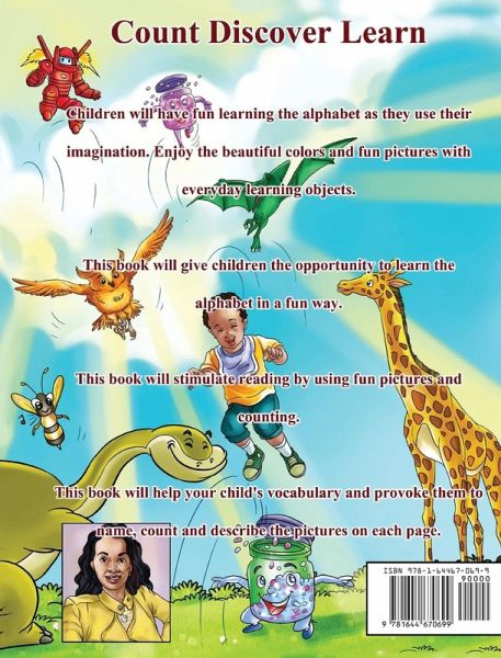 A book that goes throug the alphabet. Each page gives a letter and describes something that starts with that letter. Additionally each page counts 1-10 for that subject item. Distinguishng the alphabet as well as counting 1-10 is primary for each page.