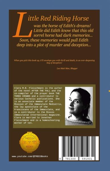 "When you pick this book up, it'll envelope you with thrill and death, in an ever-deepening bog of deception!" -- Leo Matt Man, Blogger "I think you should read this book, because it's about horses, it's a murder mystery, and it's quite a lot about horses!" -- Edith Fleischmann, nine-year-old Clara M.B. Fleischmann, mother of ten, writes a heartfelt, sensitive, and intriguing story of a sixteen-year-old girl, Edith, who loves and longs for horses, horses, horses! Edith works hard to fulfill her dreams, at the local stable in the small village Rhyme. It's hard work, but Edith wants to save up to buy a horse. Then one day, by the clever arrangement of her empathetic employer and Edith's aunt Knitty, Edith is offered a dream-like opportunity to board a little sorrel horse at Knitty's farm, where Edith is staying while she works at the stable. Right away, Edith must begin to compare dreams with reality, what-she-sees with what-is-true... The little sorrel horse, Little Red Riding Hood, has memories, deep and dark memories, that Edith begins to share. Edith relives the events of the past, and she begins to understand that Little Red Riding Hood is the key to a dark and muddy murder.