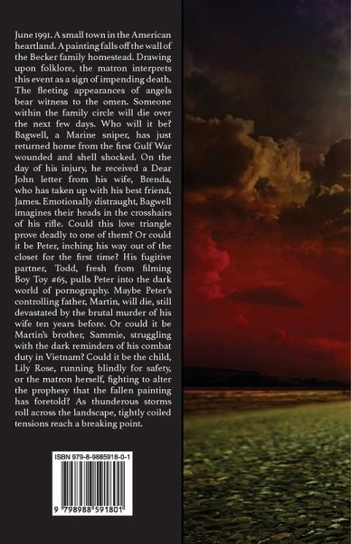 June 1991. A small town in the American heartland. A painting falls off the wall of the Becker family homestead. Drawing upon folklore, the matron interprets this event as a sign of impending death. The fleeting appearances of angels bear witness to the omen. Someone within the family circle will die over the next few days. Who will it be? Bagwell, a Marine sniper, has just returned home from the first Gulf War wounded and shell shocked. On the day of his injury, he received a Dear John letter from his wife, Brenda, who has taken up with his best friend, James. Emotionally distraught, Bagwell imagines their heads in the crosshairs of his rifle. Could this love triangle prove deadly to one of them? Or could it be Peter, inching his way out of the closet for the first time? His fugitive partner, Todd, fresh from filming Boy Toy #65, pulls Peter into the dark world of pornography. Maybe Peter's controlling father, Martin, will die, still devastated by the brutal murder of his wife ten years before. Or could it be Martin's brother, Sammie, struggling with the dark reminders of his combat duty in Vietnam? Could it be the child, Lily Rose, running blindly for safety, or the matron herself, fighting to alter the prophesy that the fallen painting has foretold? As thunderous storms roll across the landscape, tightly coiled tensions reach a breaking point.