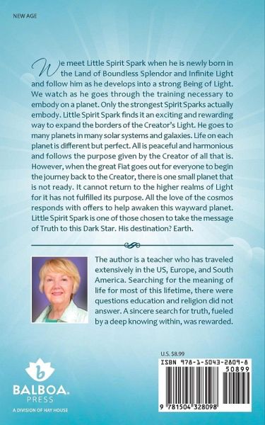 We meet Little Spirit Spark when he is newly born in the Land of Boundless Splendor and Infinite Light and follow him as he develops into a strong Being of Light. We watch as he goes through the training necessary to embody on a planet. Only the strongest Spirit Sparks actually embody. Little Spirit Spark finds it an exciting and rewarding way to expand the borders of the Creator's Light. He goes to many planets in many solar systems and galaxies. Life on each planet is different but perfect. All is peaceful and harmonious and follows the purpose given by the Creator of all that is. However, when the great Fiat goes out for everyone to begin the journey back to the Creator, there is one small planet that is not ready. It cannot return to the higher realms of Light for it has not fulfilled its purpose. All the love of the cosmos responds with offers to help awaken this wayward planet. Little Spirit Spark is one of those chosen to take the message of Truth to this Dark Star. His destination? Earth.