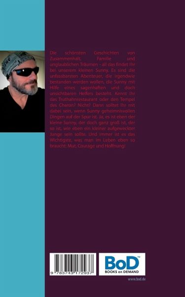 Die schönsten Geschichten von Zusammenhalt, Familie und unglaublichen Träumen - all das findet Ihr bei unserem kleinen Sunny. Es sind die unfassbarsten Abenteuer, die irgendwie bestanden werden wollen, die Sunny mit Hilfe eines sagenhaften und doch unsichtbaren Helfers besteht. Kennt Ihr das Truthahnrestaurant oder den Tempel des Charon? Nicht? Dann solltet Ihr mit dabei sein, wenn Sunny geheimnisvollen Dingen auf der Spur ist. Ja, es ist eben der kleine Sunny, der doch ganz groß ist, der so ist, wie eben ein kleiner aufgeweckter Junge sein sollte. Und immer ist es das Wichtigste, was man im Leben eben so braucht: Mut, Courage und Hoffnung!…mehr