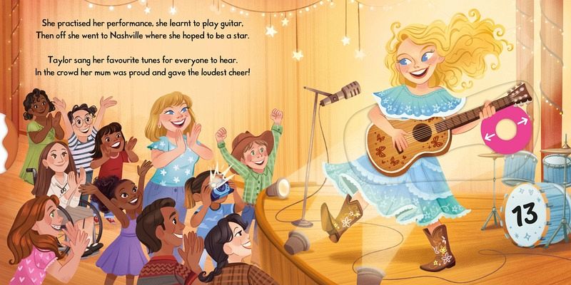 Get to know global superstar Taylor Swift in this push, pull and slide book. Perfect for little Swifties! Little Superstars: Taylor is an interactive introduction to the chart-topping singer and songwriter, and empowers young children to follow their dreams. Push, pull and slide the scenes to discover Taylor's incredible life story, play along with her cats at home and even join Taylor on stage! Can you also find all the Taylor Swift Easter eggs hidden throughout? With bright, colourful illustrations by Mariana Avila Lagunes, fun rhyming text and lots of detail to spot, young children will want to revisit this book again and again. Meet more Little Superstars in this series! Also available: Beyoncé