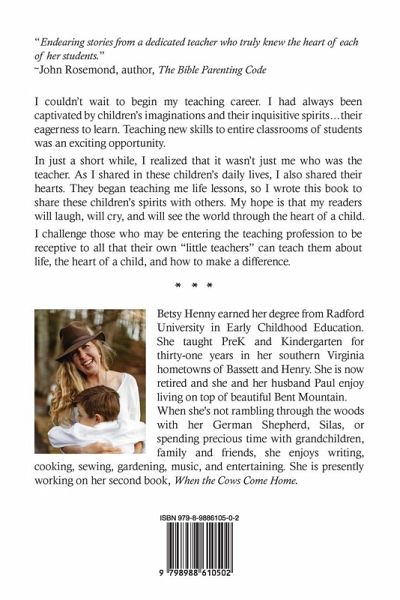 I couldn't wait to begin my teaching career. I had always been captivated by children's imaginations and their inquisitive spirits.... Their eagerness to learn. Teaching new skills to entire classrooms of students was an exciting opportunity. In just a short while, I realized that it wasn't just me who was the teacher. As I shared in these children's daily lives, I also shared their hearts. They began teaching me life lessons, so I wrote this book to share these children's spirits with others. My hope is that my readers will laugh, will cry, and will see the world through the heart of a child. I challenge those who may be entering the teaching profession to be receptive to all that their own "little teachers" can teach them about life, the heart of a child, and how to make a difference.