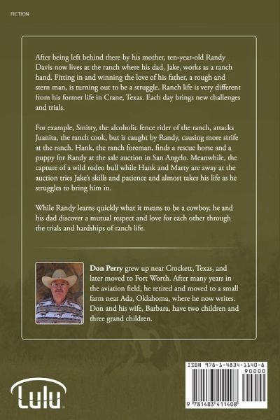After being left behind there by his mother, ten-year-old Randy Davis now lives at the ranch where his dad, Jake, works as a ranch hand. Fitting in and winning the love of his father, a rough and stern man, is turning out to be a struggle. Ranch life is very different from his former life in Crane, Texas. Each day brings new challenges and trials. For example, Smitty, the alcoholic fence rider of the ranch, attacks Juanita, the ranch cook, but is caught by Randy, causing more strife at the ranch. Hank, the ranch foreman, finds a rescue horse and a puppy for Randy at the sale auction in San Angelo. Meanwhile, the capture of a wild rodeo bull while Hank and Marty are away at the auction tries Jake's skills and patience and almost takes his life as he struggles to bring him in. While Randy learns quickly what it means to be a cowboy, he and his dad discover a mutual respect and love for each other through the trials and hardships of ranch life.