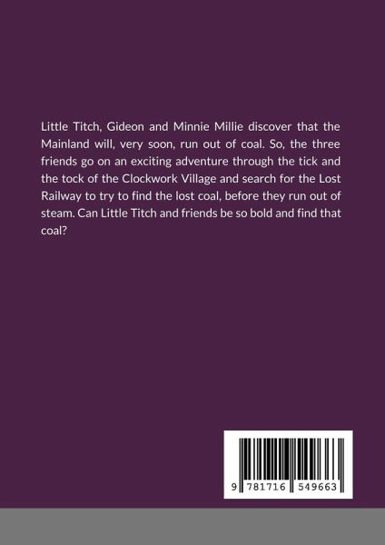 Little Titch, Gideon and Minnie Millie discover that the Mainland will, very soon, run out of coal. So, the three friends go on an exciting adventure through the tick and the tock of the Clockwork Village and search for the Lost Railway to try to find the lost coal, before they run out of steam. Can Little Titch and friends be so bold and find that coal?