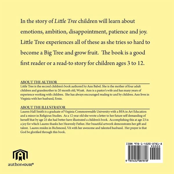 In the story of Little Tree children will learn about emotions, ambition, disappointment, patience and joy. Little Tree experiences all of these as she tries so hard to become a Big Tree and grow fruit. The book is a good first reader or a read-to story for children ages 3 to 12.