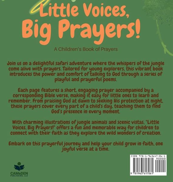 Dive into a world where the jungle comes alive with the power of prayer. "Little Voices, Big Prayers!" is a beautifully illustrated children's book that teaches the importance of prayer through delightful rhymes and engaging stories. Each prayer is accompanied by a corresponding Bible verse, making it a perfect bedtime companion or a wonderful guide for quiet moments. Whether you're looking to introduce your child to the habit of prayer or hoping to inspire a deeper faith, this book offers a gentle and joyful exploration of talking to God. Don't miss this opportunity to download your free copy and help your child grow in faith, one joyful verse at a time. Perfect for kids and parents alike who love engaging stories and enchanting illustrations!