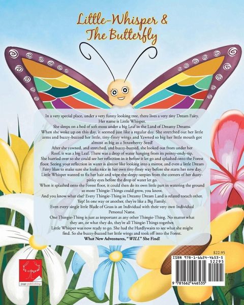 In a very special place, under a very funny looking tree, there lives a very tiny Dream Fairy. Her name is Little Whisper. She sleeps on a bed of soft moss under a big Leaf in the Land of Dreamy Dreams. When she woke up on this day, it seemed just like a regular day. She stretched out her little arms and buzzy-buzzed her little, tiny-finey wings and Yawned so big her little mouth got almost as big as a Strawberry Seed! After she yawned, and stretched, and buzzy-buzzed, she looked out from under her Roof, it was a big Leaf. There was a drop of water hanging from its pointy-endy-tip. She hurried over so she could see her reflection in it before it let go and splashed onto the Forest floor. Seeing your reflection in water is almost like looking into a mirror, and even a little Dream Fairy likes to make sure she looks nice in her own tiny-finey way before she starts her new day. Little Whisper wanted to fix her hair and wipe the sleepy-seepies from the corners of her dusty-pinky eyes before the drop of water let go. When it splashed onto the Forest floor, it could then do its own little part in watering the ground so more Thingie-Things could grow, you know. And you know what else? Every Thingie-Thing in Dreamy Dream Land is related to each other. Yep! In one way or another, they're like a Big Family. Even every single little Blade of Grass is an Individual with their very own Individual Personal Name. One Thingie-Thing is just as important as any other Thingie-Thing. No matter what they are, or what they do, they're all Thingie-Things together. Little Whisper was now ready to go. She had the Hardlywaits to see what she might find. So she buzzy-buzzed her little wings and took off into the Forest. What New Adventures, "WILL" She Find!