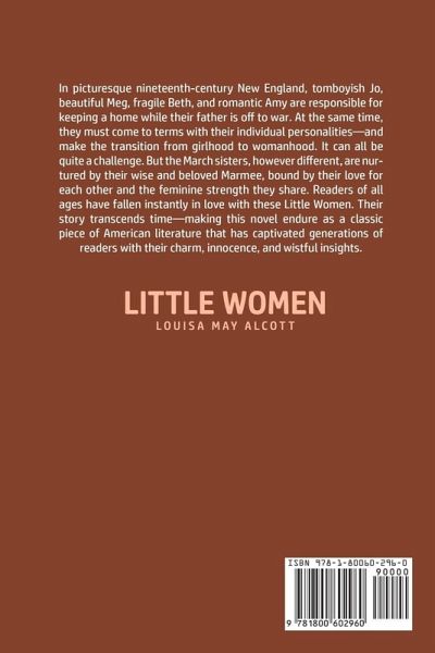 Do you want to read Little Women? If so then keep reading... In picturesque nineteenth-century New England, tomboyish Jo, beautiful Meg, fragile Beth, and romantic Amy are responsible for keeping a home while their father is off to war. At the same time, they must come to terms with their individual personalities-and make the transition from girlhood to womanhood. It can all be quite a challenge. But the March sisters, however different, are nurtured by their wise and beloved Marmee, bound by their love for each other and the feminine strength they share. Readers of all ages have fallen…mehr