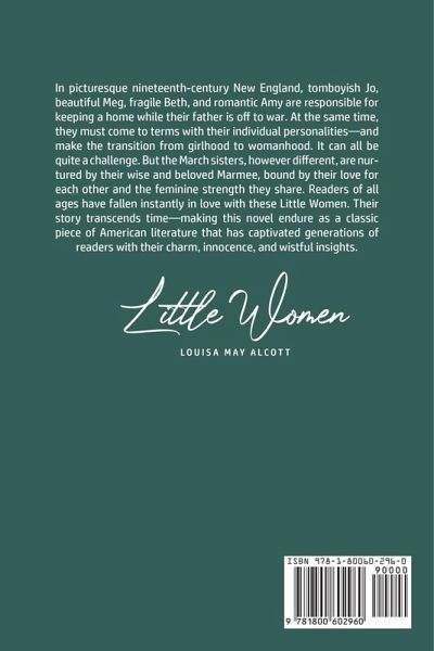 Do you want to read Little Women? If so then keep reading... In picturesque nineteenth-century New England, tomboyish Jo, beautiful Meg, fragile Beth, and romantic Amy are responsible for keeping a home while their father is off to war. At the same time, they must come to terms with their individual personalities-and make the transition from girlhood to womanhood. It can all be quite a challenge. But the March sisters, however different, are nurtured by their wise and beloved Marmee, bound by their love for each other and the feminine strength they share. Readers of all ages have fallen…mehr