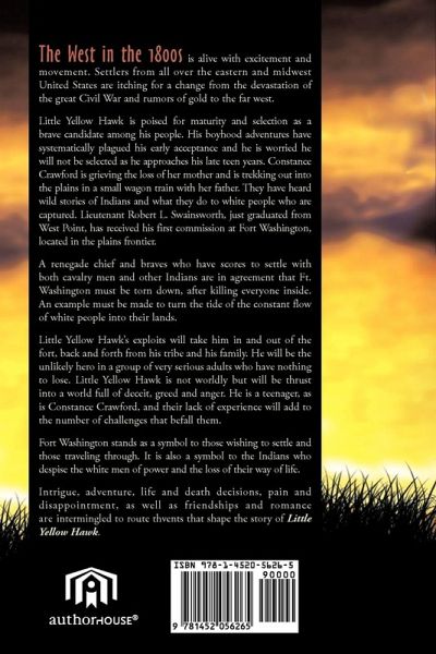 As a wagon train heads to the American West in the late 1800's, a fast paced collision course develops between a fair maiden, a dashing new cavalry officer and a teenage indian brave, named Little Yellow Hawk. Violence, romance, treachery and danger lurk around every corner. Fort Washington and its inhabitants face an onslaught of emotional battles complicated by a sinister plot. Life and death decisions become more frequent as the indian attacks increase. Settlers are murdered, and seek refuge in Fort Washington as the action culminates in a final assault. Little Yellow Hawk is a hero of remarkable courage and honesty. He rises to the occasion, time and time again, providing the reader with an insight into the growth process and maturity that an indian brave confronts, and ultimately conquers.