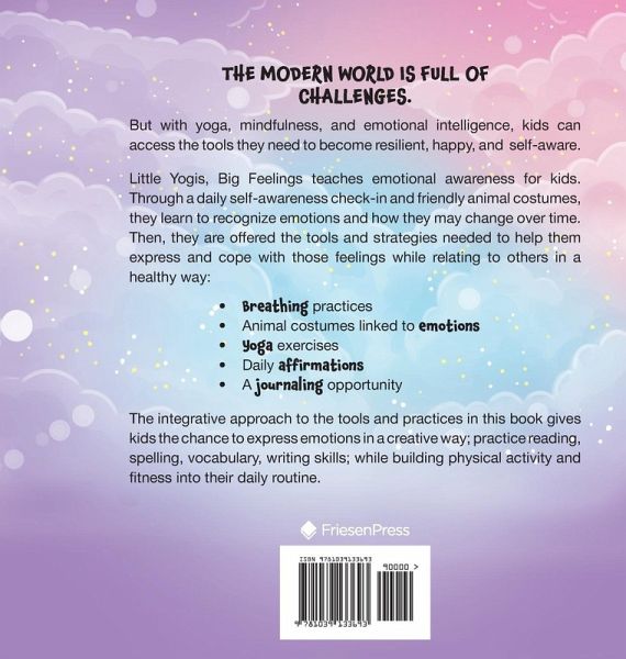 The modern world is full of challenges. But with yoga, mindfulness, and emotional intelligence, kids can access the tools they need to become resilient, happy, and self-aware. Little Yogis, Big Feelings teaches emotional awareness for kids. Through a daily self-awareness check-in and friendly animal costumes, they learn to recognize emotions and how they may change over time. Then, they are offered the tools and strategies needed to help them express and cope with those feelings while relating to others in a healthy way: ¿ Breathing practices ¿ Animal costumes linked to emotions ¿ Yoga…mehr