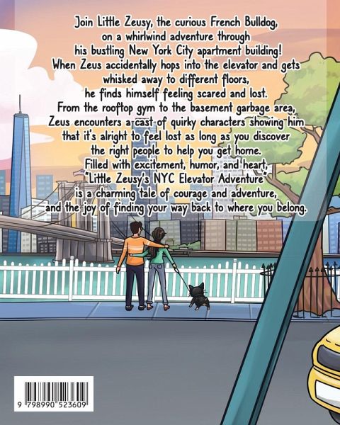 Get ready to embark on a heartwarming journey through the bustling halls of a New York City apartment building, all seen through the eyes of the lovable French Bulldog, Little Zeusy! This delightful story is perfect for parents and little ones, designed for cozy read-aloud moments that spark imagination and laughter. Join Zeus as he gets whisked away in an elevator to a different floor from his home and finds himself feeling scared and lost. From the rooftop gym to the basement garbage area, Little Zeusy encounters a cast of quirky characters showing him that it's alright to feel lost as long as you discover the right people to help you get home. Filled with excitement, humor, and heart, "Little Zeusy's NYC Elevator Adventure" is a charming tale of courage and adventure, and the joy of finding your way back to where you belong. Little Zeusy's adventures are the perfect bedtime story. Enjoy vibrant, playful artwork bringing Zeus's adventures to life, captivating young imaginations and making each page a visual delight. This book is perfect for bonding time, encouraging parents and children to share laughter and joy together. So grab your little ones, settle in, and get ready to follow Little Zeusy on a whimsical adventure that proves every journey leads you back to where you truly belong. Join the fun and make "Little Zeusy's NYC Elevator Adventure" a beloved part of your family's storytime today!