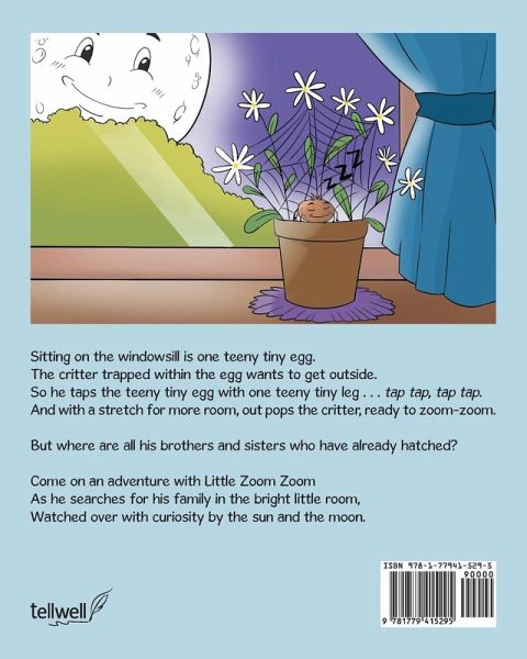 Sitting on the windowsill is one teeny tiny egg. The critter trapped within the egg wants to get outside. So he taps the teeny tiny egg with one teeny tiny leg . . . tap tap, tap tap. And with a stretch for more room, out pops the critter, ready to zoom-zoom.But where are all his brothers and sisters who have already hatched?Come on an adventure with Little Zoom Zoom As he searches for his family in the bright little room, Watched over with curiosity by the sun and the moon.