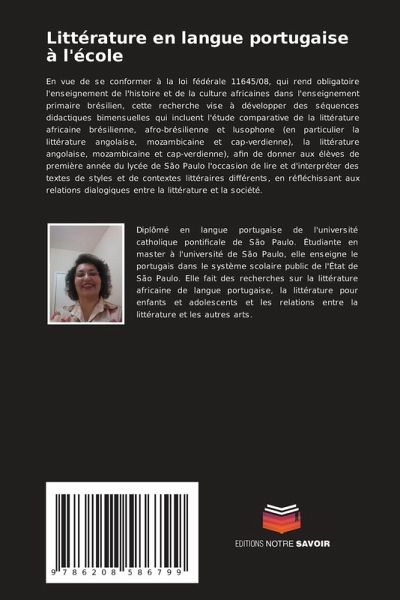 En vue de se conformer à la loi fédérale 11645/08, qui rend obligatoire l'enseignement de l'histoire et de la culture africaines dans l'enseignement primaire brésilien, cette recherche vise à développer des séquences didactiques bimensuelles qui incluent l'étude comparative de la littérature africaine brésilienne, afro-brésilienne et lusophone (en particulier la littérature angolaise, mozambicaine et cap-verdienne), la littérature angolaise, mozambicaine et cap-verdienne), afin de donner aux élèves de première année du lycée de São Paulo l'occasion de lire et d'interpréter des textes de styles et de contextes littéraires différents, en réfléchissant aux relations dialogiques entre la littérature et la société.