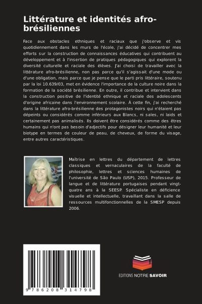 Face aux obstacles ethniques et raciaux que j'observe et vis quotidiennement dans les murs de l'école, j'ai décidé de concentrer mes efforts sur la construction de connaissances éducatives qui contribuent au développement et à l'insertion de pratiques pédagogiques qui explorent la diversité culturelle et raciale des élèves. J'ai choisi de travailler avec la littérature afro-brésilienne, non pas parce qu'il s'agissait d'une mode ou d'une obligation, mais parce que je pense que le parti pris littéraire, soutenu par la loi 10.639/03, met en évidence l'importance de la culture noire dans la formation de la société brésilienne. En outre, il contribue et intervient dans la construction positive de l'identité ethnique et raciale des adolescents d'origine africaine dans l'environnement scolaire. À cette fin, j'ai recherché dans la littérature afro-brésilienne des protagonistes noirs qui n'étaient pas dépeints ou considérés comme inférieurs aux Blancs, ni sales, ni laids et certainement pas animalisés. Ils doivent être considérés comme des êtres humains qui n'ont pas besoin d'adjectifs pour désigner leur humanité et leur biotype en termes de couleur de peau, de cheveux, de forme du visage, entre autres caractéristiques.