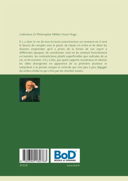 Littérature Et Philosophie Mêlées Victor HugoIl y a dans la vie de tout écrivain consciencieux un moment où il sent le besoin de compter avec le passé, de classer en ordre et de dater les diverses empreintes qu'il a prises de la forme de son esprit à différentes époques, de coordonner, tout en les mettant franchement en lumière, les contradictions plutôt superficielles que radicales de sa vie, et de montrer, s'il y a lieu, par quels rapports mystérieux et intimes les idées divergentes en apparence de sa première jeunesse se rattachent à la pensée unique et centrale qui s'est peu à peu dégagée du milieu d'elles et qui a fini par les résorber toutes. D'ordinaire, ces sortes d'examens de conscience, quand ils sont faits avec bonne foi et candeur, produisent des livres du genre de celuici. Ces deux volumes, en effet, ne sont autre chose que la collection de toutes les notes que l'auteur, dans la route littéraire et politique qu'il a déjà parcourue, a écrites çà et là, chemin faisant, depuis quinze ans qu'il marche. Ce livre, qui ne peut offrir d'ailleurs quelque intérêt qu'aux personnes qui aimeraient à voir de quelle façon et à quel point un esprit loyal peut se transformer par la critique de luimême, dans nos temps de révolution sociale et intellectuelle, ce livre est le complément nécessaire et naturel de la série des oeuvres de l'auteur. Chacune des sections qu'il renferme correspond à l'un des termes de cette série chacun de ces morceaux a été écrit en même temps que quelqu'un des ouvrages qui la composent, et représente, pour qui sait bien voir, le même groupe d'idées. Ainsi le Journal d'un jacobite de 1819 est du temps de Han d'Islande, le Journal d'un révolutionnaire de 1830 est du temps de NotreDame de Paris. En consultant les dates qu'on a eu soin de placer en tête de tous ces fragments, ceux des lecteurs qui se plaisent à ces sortes de comparaisons, même lorsqu'il s'agit d'ouvrages aussi peu importants que celuici, pourront voir aisément à quelle oeuvre de l'auteur, à quel moment de sa manière, à quelle phase de sa pensée sur la société et sur l'art se rattache chacune des divisions de ce livre. Ces deux volumes côtoient tous les autres en les reflétant.
