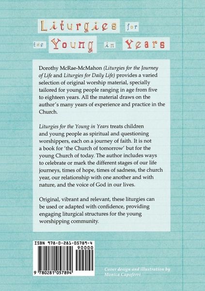 A collection of fresh, new liturgies and prayers, closely targeted at different age ranges from 5yrs to 18yrs old, plus material for all-age. All the material has arisen from experience and has been written to be used or adapted with confidence. Includes material for: 'Sunday School' and mid-week children's services; Youth services, clubs and events; School assemblies; Family services.