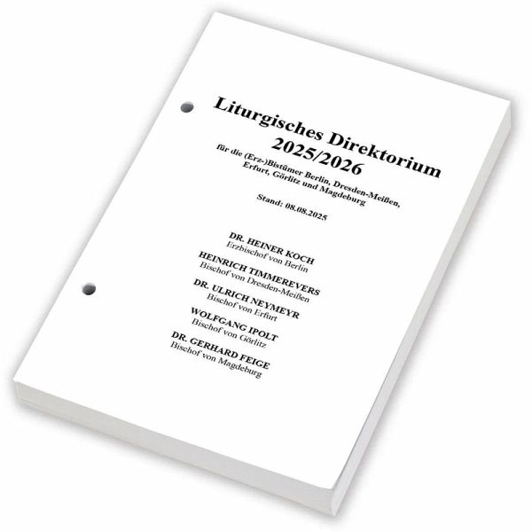 Das gemeinsame Direktorium 2025/2026 der (Erz-)Bistümer Berlin, Dresden-Meißen, Erfurt, Görlitz und Magdeburg für die Messfeier und die Stundenliturgie. Dafür wurden in die für das deutsche Sprachgebiet erarbeitete Vorlage die Eigenfeiern der einzelnen Diözesen mit ihren Besonderheiten eingefügt. Mit Einleitungen zu den Festzeiten, den liturgischen Lesungen des Tages, Vorschlägen für die Orationen, den monatlichen Gebetsanliegen des Papstes, Texten zu den Gedenktagen der neuen Heiligen u. v. m.- mit allen liturgischen Angaben- übersichtliches Layout- großzügiges Format- passende Ringmappe separat erhältlich