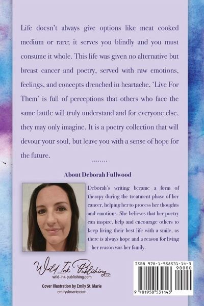 Life doesn't always give options like meat cooked medium or rare; it serves you blindly and you must consume it whole. This life was given no alternative but breast cancer and poetry, served with raw emotions, feelings, and concepts drenched in heartache. 'Live For Them' is full of perceptions that others who face the same battle will truly understand and for everyone else, they may only imagine. It is a poetry collection that will devour your soul, but leave you with a sense of hope for the future.