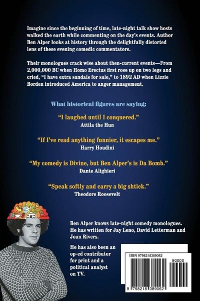 Imagine since the beginning of time, late-night talk show hosts walked the earth while commenting on the day's events. Author Ben Alper looks at history through the delightfully distorted lens of these evening comedic commentators. Their monologues crack wise about then-current events-From 2,000,000 BC when Homo Erectus first rose up on two legs and cried, "I have extra sandals for sale," to 1892 AD when Lizzie Borden introduced America to anger management. What historical figures are saying: "I laughed until I conquered." -- Attila the Hun "If I've read anything funnier, it escapes me." -- Harry Houdini "My comedy is Divine, but Ben Alper's is Da Bomb." -- Dante Alighieri "Speak softly and carry a big shtick." -- Theodore Roosevelt