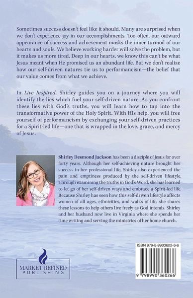 Sometimes success doesn't feel like it should. Many of us are surprised when we don't experience joy in our accomplishments. Too often our outward appearance of success and achievement mask the inner turmoil of our hearts and souls. We believe working harder will solve the problem, but it just makes us more tired. Deep in our hearts we know this can't be what Jesus meant when He promised us an abundant life. But what we don't realize is how our self-driven natures tie us to performancism-the belief that our value comes from what we achieve. In Live Inspired, Shirley guides you on a journey where you will identify the lies which fuel your self-driven nature. As you confront these lies with God's truths, you will learn how to tap into the transformative power of the Holy Spirit. With His help, you will free yourself of performancism by exchanging your self-driven practices for a Spirit-led life-one that is wrapped in the love, grace, and mercy of Jesus.