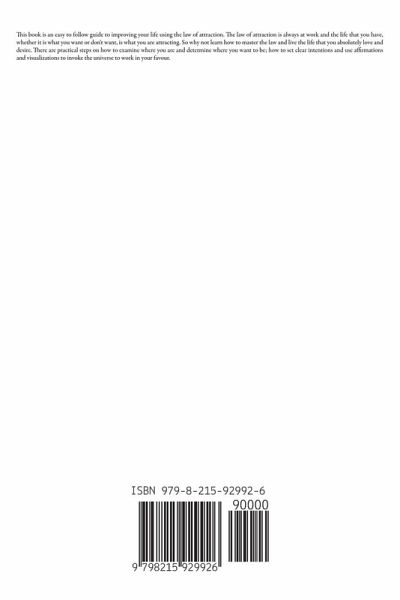 This book is an easy to follow guide to improving your life using the law of attraction. The law of attraction is always at work and the life that you have, whether it is what you want or don't want, is what you are attracting. So why not learn how to master the law and live the life that you absolutely love and desire. There are practical steps on how to examine where you are and determine where you want to be; how to set clear intentions and use affirmations and visualizations to invoke the universe to work in your favour.