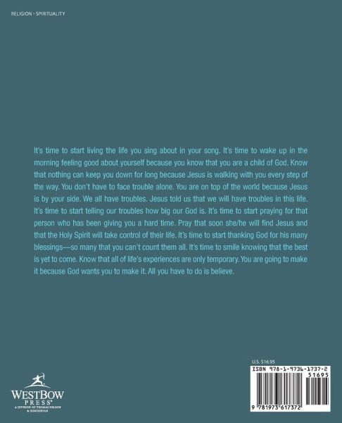 Its time to start living the life you sing about in your song. Its time to wake up in the morning feeling good about yourself because you know that you are a child of God. Know that nothing can keep you down for long because Jesus is walking with you every step of the way. You dont have to face trouble alone. You are on top of the world because Jesus is by your side. We all have troubles. Jesus told us that we will have troubles in this life. Its time to start telling our troubles how big our God is. Its time to start praying for that person who has been giving you a hard time. Pray that soon she/he will find Jesus and that the Holy Spirit will take control of their life. Its time to start thanking God for his many blessingsso many that you cant count them all. Its time to smile knowing that the best is yet to come. Know that all of lifes experiences are only temporary. You are going to make it because God wants you to make it. All you have to do is believe.