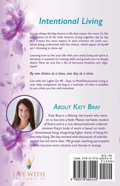 How do you live a life of harmony, freedom, and alignment? Uncover 90 daily passages of insight and inspiration that will always be with you.Do you want to be inspired daily? Do you feel like you're living in different worlds sometimes? In each moment we catch ourselves being confronted with the choice; which aspect of myself am I choosing to show up? Learning how to live your life with your mind, body, and spirit in harmony is essential to creating shifts and growth you so deeply desire.Author, psychic, empath and visionary Katy Bray understands the day to day tension living in two or more dimensions. She wrote this book as a daily companion to always be there for you, guiding you to reach for the skies while keeping your feet on the ground. Katy has been a spiritual advisor and counselor for thousands of people. Several experts on Gaiam, Kripalu, Hay House, and OM Times look to Katy for her loving clear approach. Some of Katy's credentials are being a Vedic Master (trained in meditation, yoga, and Ayurveda), life coach, integrated nutrition, and tantra student.In this book you'll find:90 deeply moving passages. Weekly exercises. Each day is accompanied with a special quote from Katy. Two powerful breathing techniques to find center and reconnect to your source. This is a perfect gift for yourself, best friend, and loved ones. It is Katy's deepest aspiration that this book series brings solace and a deeper connection into your everyday life, living in all dimensions serving as a reminder of what is available to you when you live with intention.