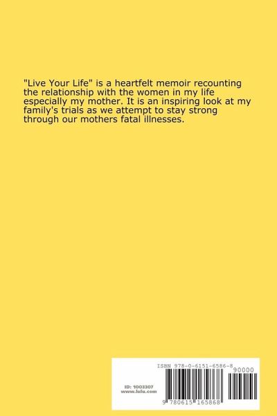 "Live Your Life" is a heartfelt memoir recounting the relationship with the women in my life especially my mother. It is an inspiring look at my family's trials as we attempt to stay strong through our mothers fatal illnesses.