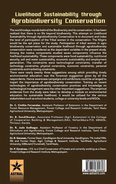 The world todays rounds behind the Biodiversity and its conservation. It has been realized that there is no life beyond biodiversity. This attempt on Livelihood Sustainability through Agrobiodiversity Conservation is to document and index the level of participation of the Tribal women in the conservation. The Nilgiris would be the apt place for the study. Participation of tribal women in agro biodiversity conservation and sustainable livelihood through agrobiodiversity conservation were considered as the dependent variables in the present study. Among the twelve components studied seven components influence the livelihood sustainability. These components were food sustainability, nutritional security, soil and water sustainability, economic sustainability and employment generation. The constraints were technological constraints, transfer of technology constraints, physical constraints, economic constraints, personal constraints and marketing constraints. There were nearly twenty three suggestions among which providing timely environmental education was the foremost suggestion given by all the respondents. Hence awareness campaigns and exhibitions could be arranged to impart the importance of agrobiodiversity conservation. Training on recent technologies of agrobiodiversity conservation practices and knowledge on technological management were the other important suggestions. The empirical evidences from the study were taken to develop a module on environmental education for sustainable livelihood. It would be utilized for the various stakeholders such as school students, college or university levels and NGOs.