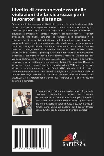Questo studio ha esaminato i livelli di consapevolezza delle violazioni della sicurezza da parte dei dipendenti remoti e fornisce una visione dettagliata delle loro pratiche, degli ostacoli e degli sforzi proattivi per mantenere la sicurezza informatica nel contesto mutevole del lavoro remoto. I risultati evidenziano una buona tendenza nei tentativi delle organizzazioni di migliorare la sicurezza dei dati attraverso la formazione e gli standard di lavoro a distanza, con i lavoratori remoti che mostrano un impegno verso le pratiche di integrità dei dati. Sebbene i dipendenti remoti siano fiduciosi nelle loro configurazioni di sicurezza, l'incidenza delle violazioni della sicurezza, in particolare il phishing e l'accesso non autorizzato ai dispositivi, sottolinea il panorama di pericolo che devono affrontare. Ciò richiede una vigilanza continua per risolvere con successo queste violazioni e aumentare le conoscenze in materia di sicurezza per limitare le minacce. Misure di sicurezza coerenti, come l'uso di reti private virtuali (VPN) per connessioni sicure e l'autenticazione a due fattori (2FA) durante i login, sono evidentemente prioritarie, contribuendo a migliorare la protezione dei dati e la sicurezza degli account. La frequenza variabile della formazione sulla sicurezza tra i lavoratori remoti sottolinea l'importanza di una formazione continua e completa.