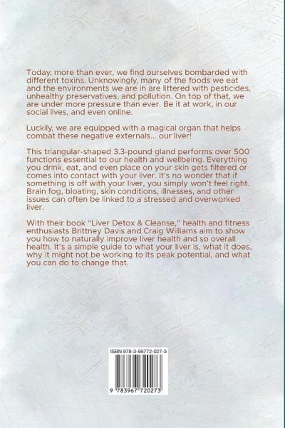 Feel disconnected and not completely comfortable in your own skin?Are you looking to get back on track with your overall health?Or do you feel like you need to hit the reset button? Today, more than ever, we find ourselves bombarded with different toxins. Unknowingly, many of the foods we eat and the environments we are in are littered with pesticides, unhealthy preservatives, and pollution. On top of that, we are under more pressure than ever. Be it at work, in our social lives, and even online. Luckily, we are equipped with a magical organ that helps combat these negative externals... our liver! This triangular-shaped 3.3-pound gland performs over 500 functions essential to our health and wellbeing. Everything you drink, eat, and even place on your skin gets filtered or comes into contact with your liver. It's no wonder that if something is off with your liver, you simply won't feel right. Brain fog, bloating, skin conditions, illnesses, and other issues can often be linked to a stressed and overworked liver. With their book "Liver Detox & Cleanse," health and fitness enthusiasts Brittney Davis and Craig Williams aim to show you how to naturally improve liver health and so overall health. It's a simple guide to what your liver is, what it does, why it might not be working to its peak potential, and what you can do to change that. Here's just a bit of what you will discover inside...The functions of your liver, and why it is the secret superstar to better health. How to make simple lifestyle changes that will produce BIG results. The 11 little known superfoods that will help detox and cleanse your liver. A cookbook section filled with breakfast, lunch, and dinner recipes. These won't only improve liver health but also taste delicious. A week-long detox meal plan that can be modified to fit your needs. Simple exercises and stretches that specifically target the liver. ... and much more. Most health and fitness books focus on overhyped, extreme, and unhealthy diets to attempt to detox, lose weight, and gain muscle. These techniques turn out to be ineffective and counterproductive. Our goal is to help give you a lasting, natural, and scientifically proven guide to improve your liver and overall health. Ready to find out more? Then let's get started, scroll up and click "Add to Cart ".