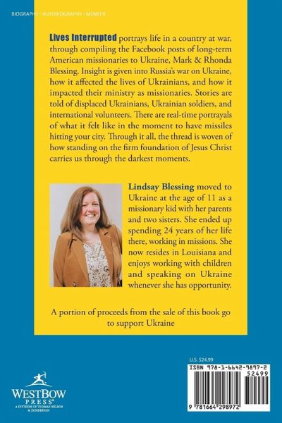 Lives Interrupted portrays life in a country at war, through compiling the Facebook posts of long-term American missionaries to Ukraine, Mark & Rhonda Blessing. Insight is given into Russia's war on Ukraine, how it affected the lives of Ukrainians, and how it impacted their ministry as missionaries. Stories are told of displaced Ukrainians, Ukrainian soldiers, and international volunteers. There are real-time portrayals of what it felt like in the moment to have missiles hitting your city. Through it all, the thread is woven of how standing on the firm foundation of Jesus Christ carries us through the darkest moments.