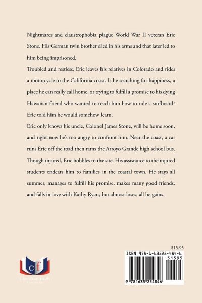 Nightmares and claustrophobia plague World War II veteran Eric Stone. His German twin brother died in his arms and that later led to him being imprisoned. Troubled and restless, Eric leaves his relatives in Colorado and rides a motorcycle to the California coast. Is he searching for happiness, a place he can really call home, or trying to fulfill a promise to his dying Hawaiian friend who wanted to teach him how to ride a surfboard? Eric told him he would somehow learn. Eric only knows his uncle, Colonel James Stone, will be home soon, and right now he's too angry to confront him. Near the coast, a car runs Eric off the road then rams the Arroyo Grande high school bus. Though injured, Eric hobbles to the site. His assistance to the injured students endears him to families in the coastal town. He stays all summer, manages to fulfill his promise, makes many good friends, and falls in love with Kathy Ryan, but almost loses, all he gains.