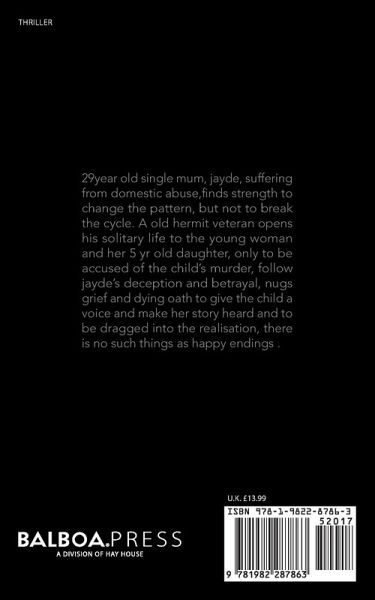 29year old single mum, jayde, suffering from domestic abuse,finds strength to change the pattern, but not to break the cycle. A old hermit veteran opens his solitary life to the young woman and her 5 yr old daughter, only to be accused of the child's murder, follow jayde's deception and betrayal, nugs grief and dying oath to give the child a voice and make her story heard and to be dragged into the realisation, there is no such things as happy endings .