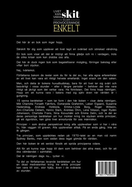 Men, och detta är bokens huvudbudskap, bara för att livet ter sig svårt och besvärligt i vissa stunder - eller i längre perioder - behöver det inte vara riktigt så jävligt som det verkar vara. Ha förtröstan. Det finns hopp nämligen. Hopp om att kunna vara i balans med sig själv även när världen är i gungning.