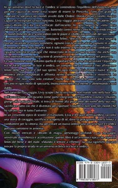 In un universo dove la luce e l'ombra si contendono l'equilibrio dell'esistenza, una giovane ragazza di nome Livia scopre di essere la Prescelta, l'unica in grado di riportare la speranza nei mondi avvolti dalle Ombre. Dotata di un cristallo magico capace di risvegliare la luce nascosta, Livia viaggia attraverso mondi decadenti, una volta vibranti di vita, ora soffocati dall'oscurità. In ogni luogo che visita, deve affrontare prove sempre più ardue, battendo contro nemici antichi, risolvendo enigmi di mondi dimenticati e scontrandosi con le paure e i dubbi più profondi del suo cuore. Accompagnata dal suo fedele compagno felino, Sbircio, Livia esplora città sospese, foreste incantate e oceani sommersi, ognuno con la propria storia, ognuno in attesa di essere salvato. Ma l'oscurità non è solo esterna. Ogni battaglia che combatte non riguarda solo forze malvagie che minacciano di divorare quei mondi, ma anche una lotta interiore contro la tentazione di arrendersi e di perdere sé stessa nel processo. La sua missione non è soltanto quella di riportare la luce, ma di ripristinare l'equilibrio tra le forze opposte di luce e ombra, un compito che la condurrà fino all'estremo limite delle sue forze e del suo spirito. In ogni mondo, Livia impara nuove lezioni, incontra alleati inaspettati e affronta nemici sempre più potenti e misteriosi. Le Ombre, che non sono solo creature fisiche ma riflessi delle paure più profonde, cercano in ogni modo di spezzarla, insinuandosi nella sua mente e alimentando i suoi dubbi. Nel corso del suo viaggio, Livia scopre che la vera forza non risiede solo nella luce, ma nell'accettazione dell'oscurità come parte integrante dell'equilibrio cosmico. Quando giunge alla battaglia finale, si trova di fronte alla più grande decisione della sua vita: sacrificare tutto ciò che è diventata per riportare l'equilibrio non solo nei mondi che ha salvato, ma in tutto l'universo. In un crescendo epico di scontri e rivelazioni, Livia e il Cuore dell'Equilibrio racconta una storia di coraggio, sacrificio e scoperta di sé, dove la protagonista non si limita a combattere per la vittoria, ma per creare un nuovo ordine, uno in cui la luce e l'ombra possano coesistere in armonia. Con mondi intricati e vibranti di magia, personaggi profondi e un messaggio universale di resilienza e accettazione, questo libro è un'avventura epica che esplora i limiti del bene e del male, sfidando il lettore a riflettere su cosa significhi davvero trovare la propria strada in un universo in bilico tra luce e ombra.
