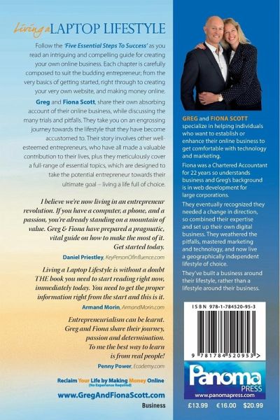 Follow the Five Essential Steps To Success as you read an intriguing and informative guide for creating your own online business. Each chapter is carefully composed to suit the budding entrepreneur; from the very basics of getting started, right through to creating your very own website, and making money online. Greg and Fiona Scott, share an absorbing account of building their online business, while discussing the many trials and pitfalls. They take you on an engrossing journey towards the lifestyle that they have become accustomed to. Their story involves other well- established entrepreneurs, who have all made a valuable contribution to their lives, plus they meticulously cover a full-range of essential topics, which are designed to take the potential entrepreneur towards their ultimate goal - living a life full of choice!