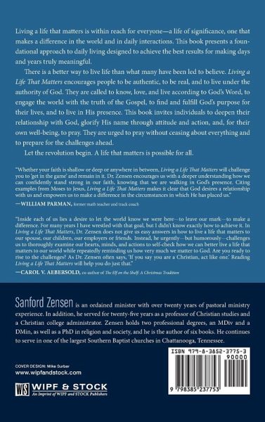 Living a life that matters is within reach for everyone--a life of significance, one that makes a difference in the world and in daily interactions. This book presents a foundational approach to daily living designed to achieve the best results for making days and years truly meaningful. There is a better way to live life than what many have been led to believe. Living a Life That Matters encourages people to be authentic, to be real, and to live under the authority of God. They are called to know, love, and live according to God's Word, to engage the world with the truth of the Gospel, to find and fulfill God's purpose for their lives, and to live in His presence. This book invites individuals to deepen their relationship with God, glorify His name through attitude and action, and, for their own well-being, to pray. They are urged to pray without ceasing about everything and to prepare for the challenges ahead. Let the revolution begin. A life that matters is possible for all.