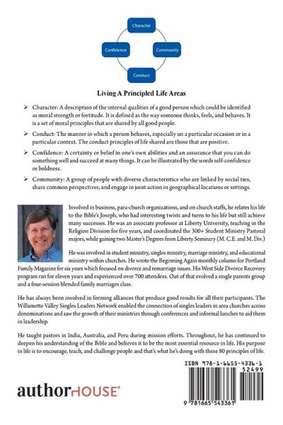 We have lost sight of the principles of life that guide us to holistic living. These principles are rooted in the Bible and have not changed through the centuries. They are rules without cracks, essential qualities, and the way people can live a dedicated life to themselves, others, and God. They provide freedom in how to live and direction in how to treat others. In every discipline, industry, or profession there is a language which is unique to its purpose, and this is the language for living a fulfilled life. It reveals to individuals, families, groups, churches, and businesses many essential principles to right living which are of inestimable value if used, and can cause a life to thrive. Each principle uses a story in Scripture to bring the principles to life and make easier to remember. The principle remains fresh in the context of the story and brings insight into how to apply it to life today. A principled life cannot be over-rated. It is a key element in the development of maturity in many areas of life.
