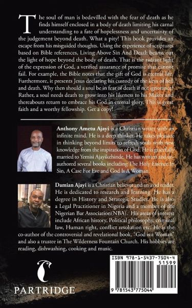 The soul of man is bedevilled with the fear of death as he finds himself enclosed in a body of death limiting his carnal understanding to a fate of hopelessness and uncertainty of the judgement beyond death. What a pity! This book provides an escape from his misguided thoughts. Using the experience of scriptures based on Bible references, Living Beyond Sin And Death beams out the light of hope beyond the body of death. That is the radiant light of the expression of God, a verified assurance of promise that cannot fail. For example, the Bible notes that the gift of God is eternal life. Furthermore, it presents Jesus declaring his custody of the keys of hell and death. Why then should a soul be in fear of death if not ignorance? Rather, a soul needs death to grow into his likeness to his Maker and thereabouts return to embrace his God in eternal glory. This is great faith and a worthy fellowship. Get a copy!
