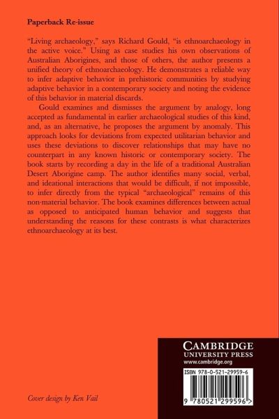 'Living archaeology,' says Richard Gould, 'is ethnoarchaeology in the active voice'. Using as case studies his own observations of Australian Aborigines, and those of others, the author presents a unified theory of ethnoarchaeology. He demonstrates a reliable way to infer adaptive behavior in prehistoric communities by studying adaptive behavior in a contemporary society and noting the evidence of this behavior in material discards. Gould examines and dismisses the argument by analogy, long accepted as fundamental in earlier archaeological studies of this kind, and, as an alternative, he proposes the argument by anomaly. The book starts by recording a day in the life of a traditional Australian Desert Aborigine camp. the author identifies many social, verbal, and ideational interactions that would be difficult, if not impossible, to infer directly from the typical 'archaeological' remains of this non-material behavior. The book examines differences between actual as opposed to anticipated human behavior and suggests that understanding the reasons for these contrasts is what characterizes ethnoarchaeology at its best.