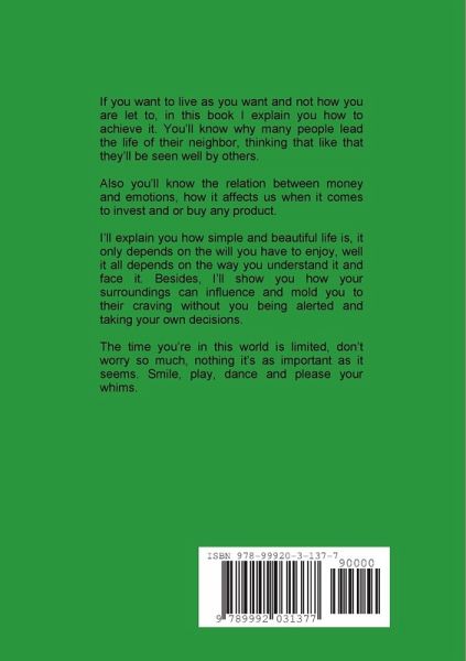 It's a manual to understand how bad it can go for you if you don't live how you feel. You'll understand the importance of emotions when it comes to behaving in any social ambit, either economical or simply in a meeting between friends. You'll understand why many people live from appearances and not how they really are. I'll tell you all the fears and frustrations that lead them to live in that way. Also you'll realize that living is simply that, living. You decided if you live sad and bitter or on the contrary, joyful and happy.