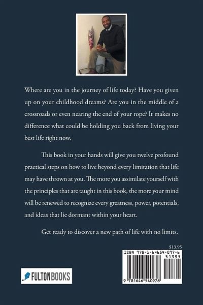 Where are you in the journey of life today? Have you given up on your childhood dreams? Are you in the middle of a crossroads or even nearing the end of your rope? It makes no difference what could be holding you back from living your best life right now. This book in your hands will give you twelve profound practical steps on how to live beyond every limitation that life may have thrown at you. The more you assimilate yourself with the principles that are taught in this book, the more your mind will be renewed to recognize every greatness, power, potentials, and ideas that lie dormant within your heart. Get ready to discover a new path of life with no limits. 1
